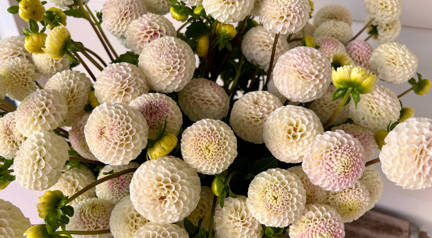 A diverse mix of blooms sizes ranging from Pompons thru to Giant Decoratives, we have provided 8 of our favourite colour blends below for you to choose from.
