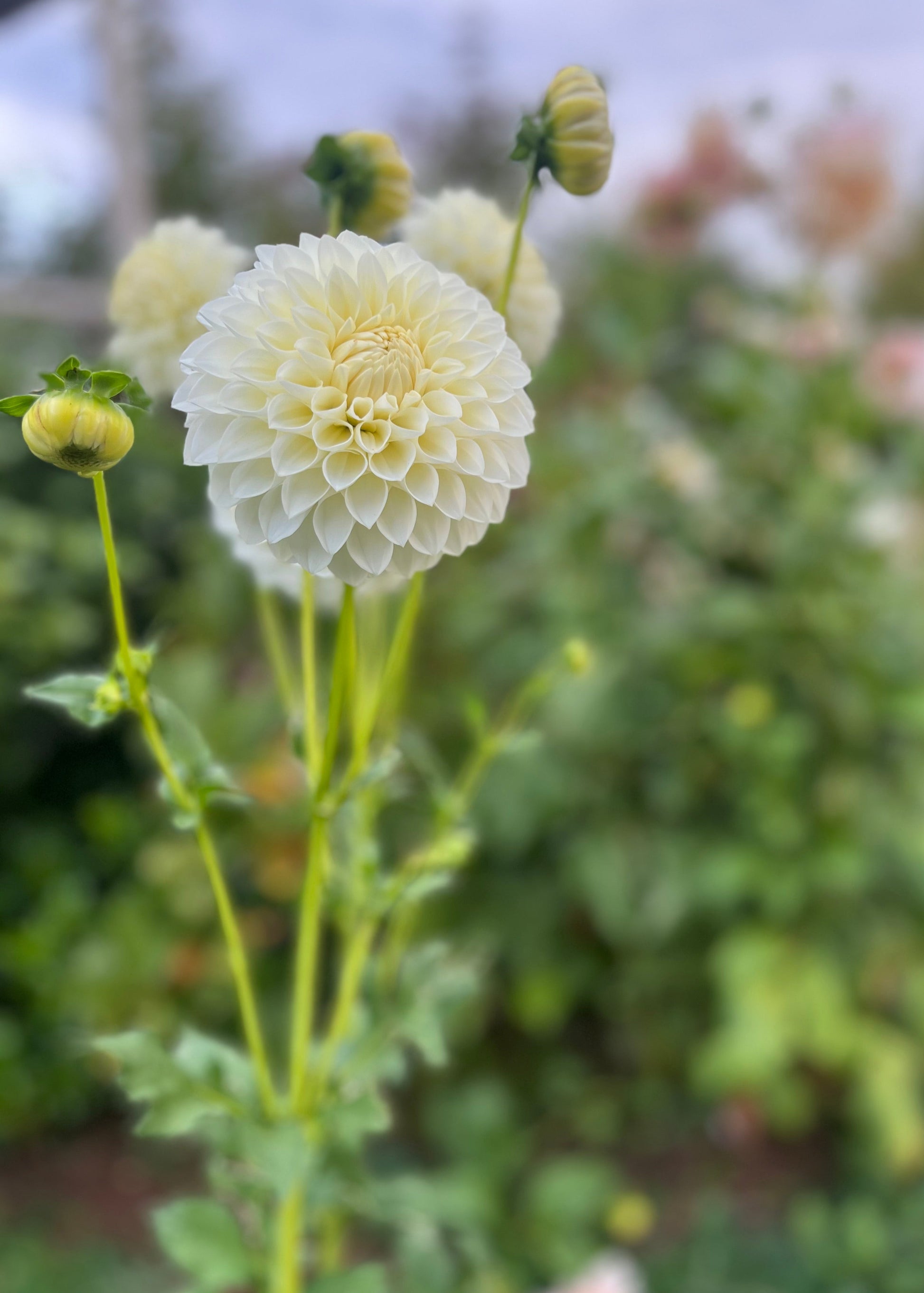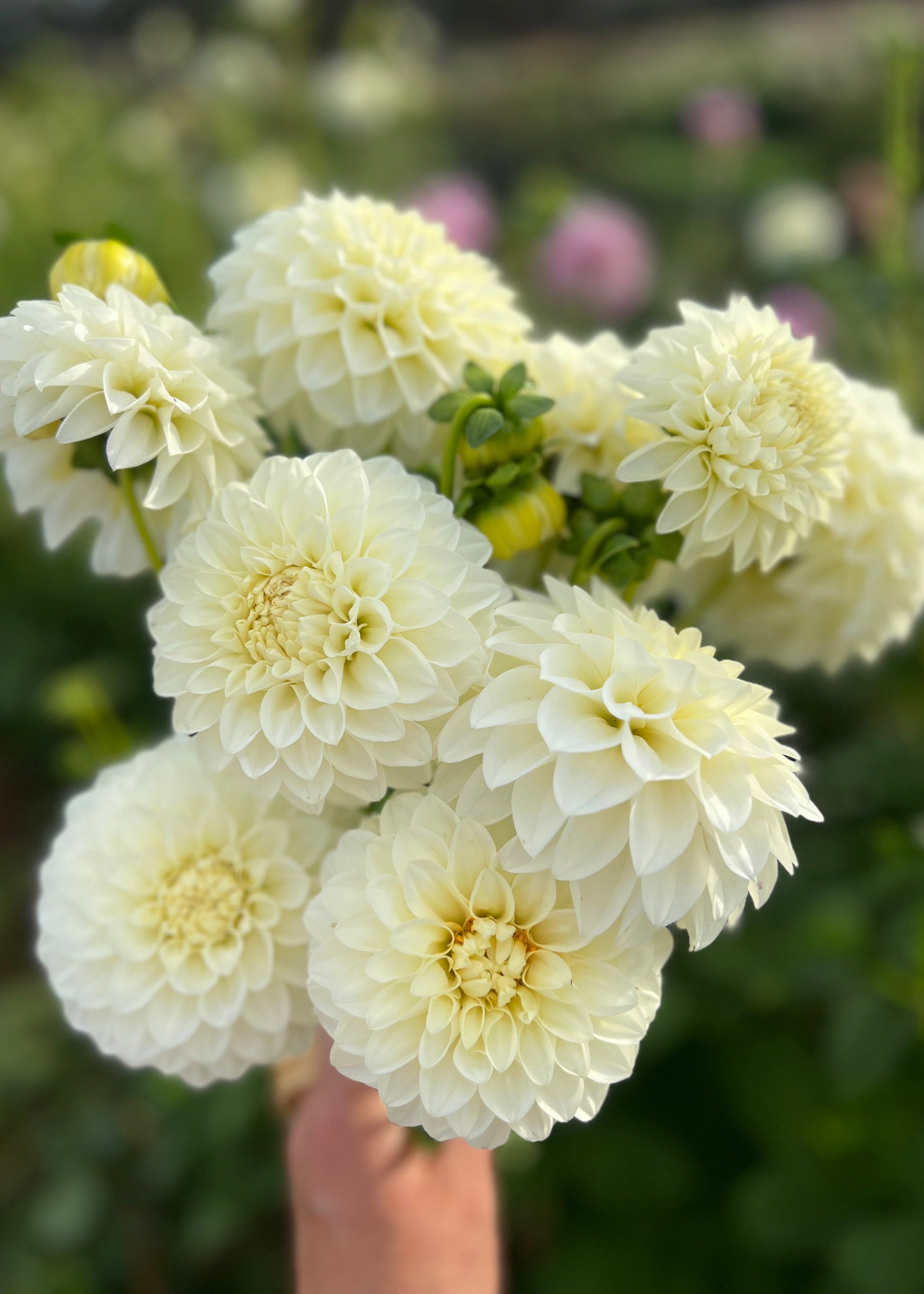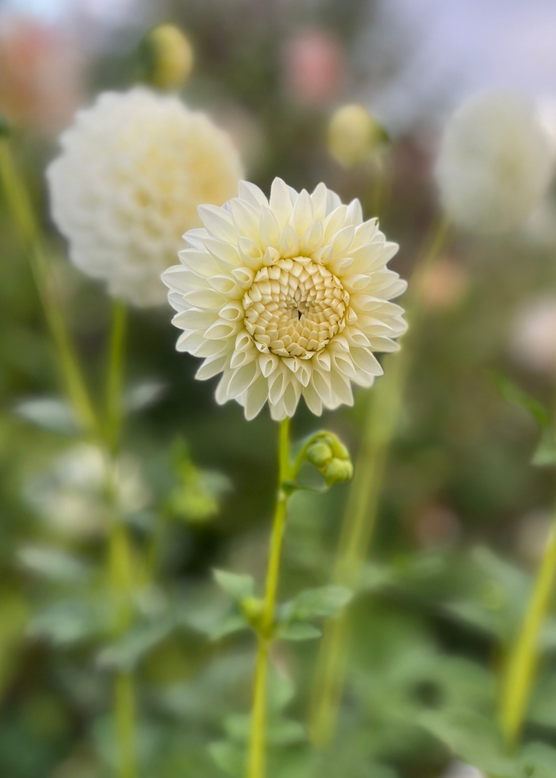 Slightly pale lemon to the centre as petals unfold, this is the go-to cream dahlia for florists buckets, farm-gate buckets, bunches, and bespoke arrangements.